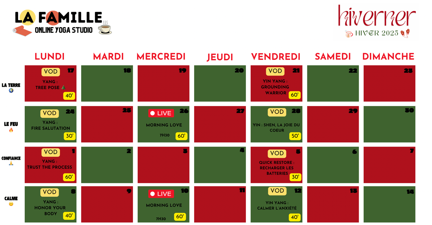 À partir du 17 novembre jusqu'au 9 janvier sur La Famille Online Yoga Studio